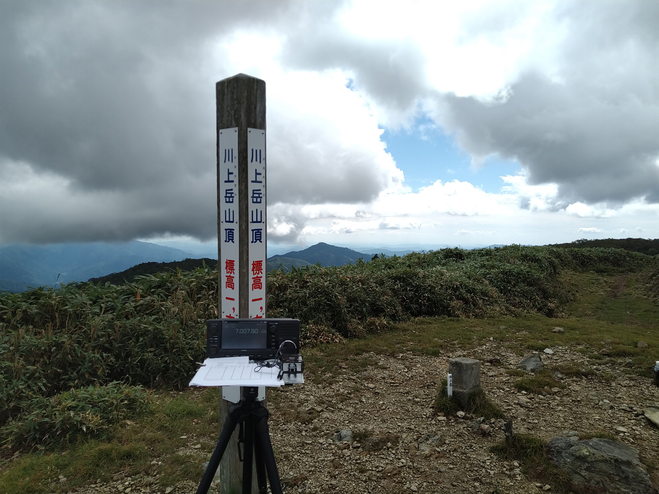 イチイの木の辺りで道を間違えたのか細く笹がかぶり気味の道をしばらく歩くと正しい道に合流した。その後道は整備されているが、笹の露を気にしながらの約400mの登り、きついとは思わなかったが長く感じました、尾根上に出ると緩やかなアップダウンで山頂へ。山頂で会った人二組から早朝にツメタ谷のゲートに行こうとしたらその手前約2kmにあるゲートが閉まっていたと聞かされた。来るときは気づかなかったのですが、帰路確かに開いているゲートがありました。7時ぐらいに開いたようです。無線はなんとか5局、帰りの歩行時間とゲートの状態が気になったりしたので早めに終了(出られないよぉ~では困る)