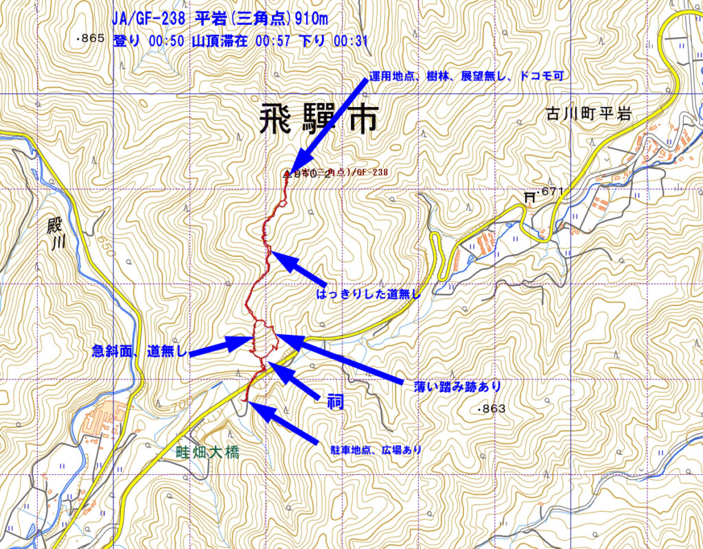 当初は、こちらも簡単に行けそうな、JA/GF-104 三ノ谷 1137mを予定していたが、ここが今日歩いた猪臥山から自動車移動途中にあり、入山できるか確認してみて判断することにした。