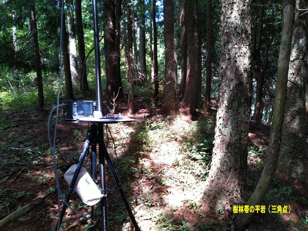 三角点標石見つからず、上空に開けたところを探し、早く下りたい気持ちもあり、こちらも7MHzのみの運用とした。