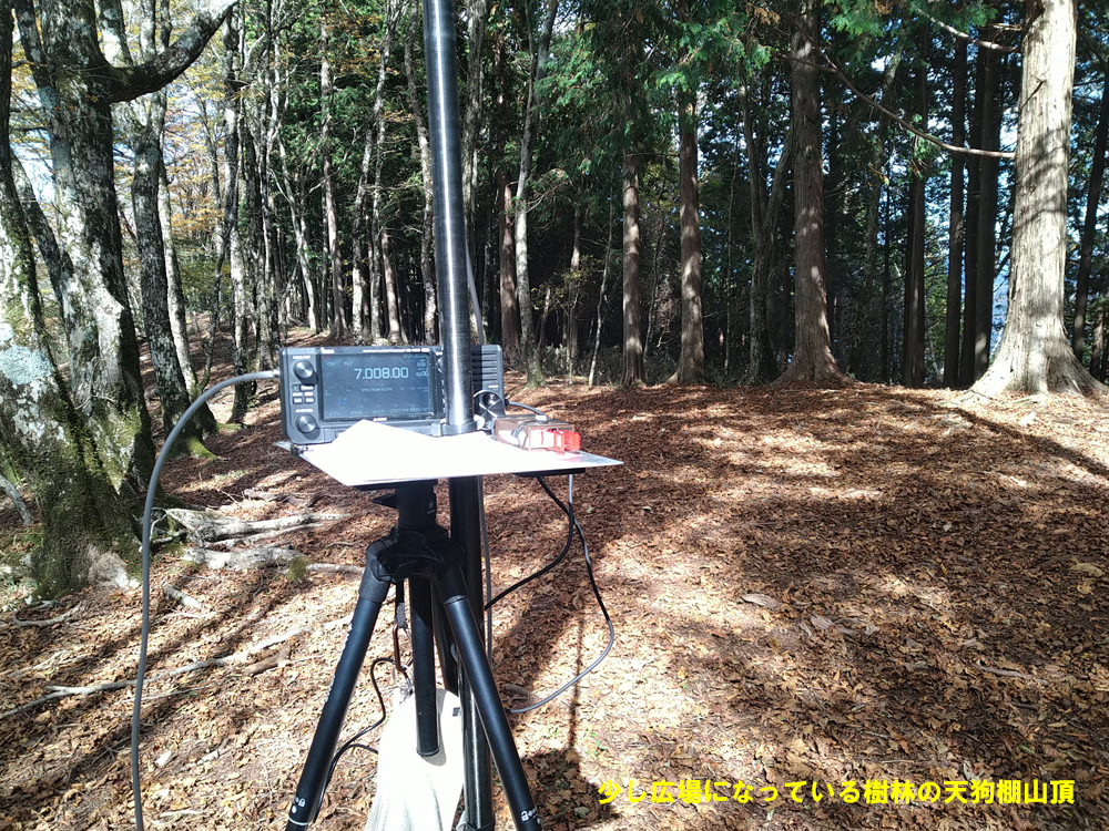 そのまま緩やかな尾根を歩いて樹林の山頂に到着。上空には空間があったので、楽にアンテナを設営し、こちらも7MHzのみで終了しました。