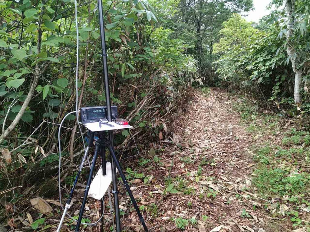 登山道が広いのでそれを利用してワイヤーアンテナを設営した。