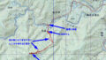下の登山口に到着しましたが、上の登山口までの道が今でも通行止めかどうか確認をしに行ってみたらゲートは開いているものの少し先でチェーンにより、災害通行止めの標識がありました。もう一度下の登山口、あさひの森の駐車場に車を置いて、出発、すぐに林道が二股に分かれていたので、上の方に向かっている道を行ったら間違えており、引き返しました。