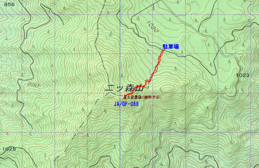 行こうか迷っていて、運用開始が遅れました。思ったより暑さは無かったが虫が多かった。7MHzで開始後すぐに2局呼ばれたがそれから全然呼ばれず、スコープ表示も信号ほとんど無し、50MHz、144MHz、430MHzを聞いてみたが、信号無し430MHzFMで呼んでみようと思ったが、モービルアンテナのSWR悪く諦めました。そしてもう一度7MHzに戻り2局でき、ポイント加算させることができる4局の最低線をクリア。登山道は短いが急坂。