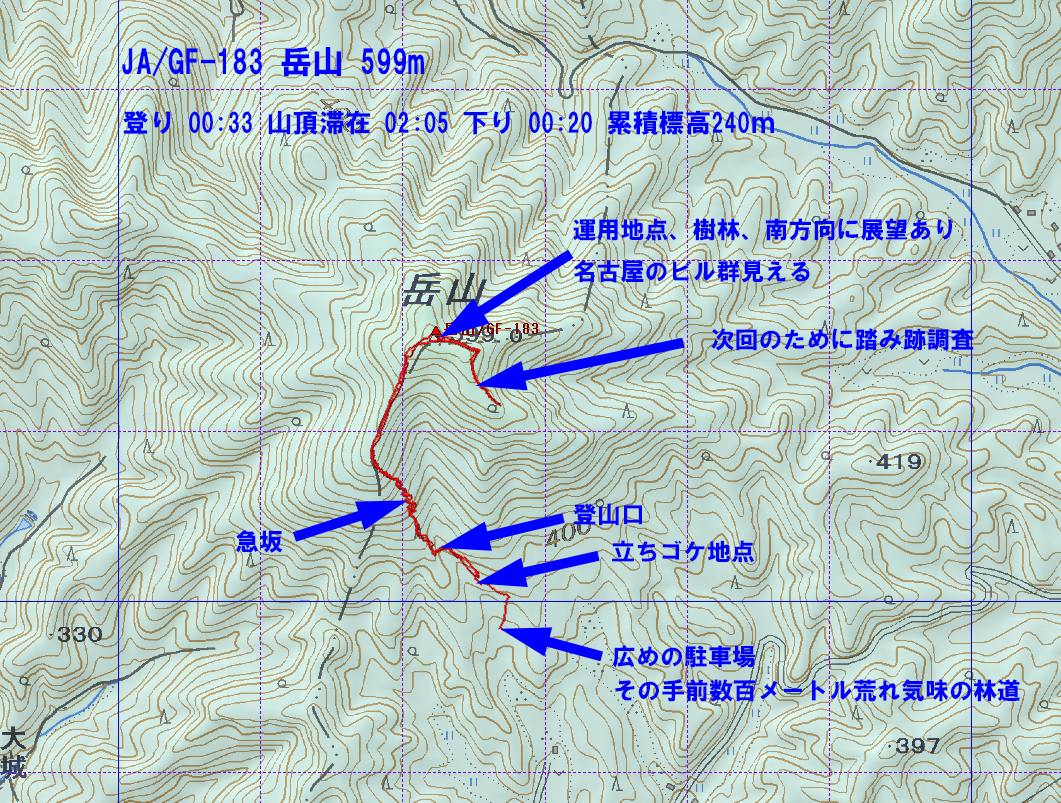 18MHz、7MHzと運用し、次回のために方角が違う方の登山道をどの尾根に続いているか、少し確認して下山しました。