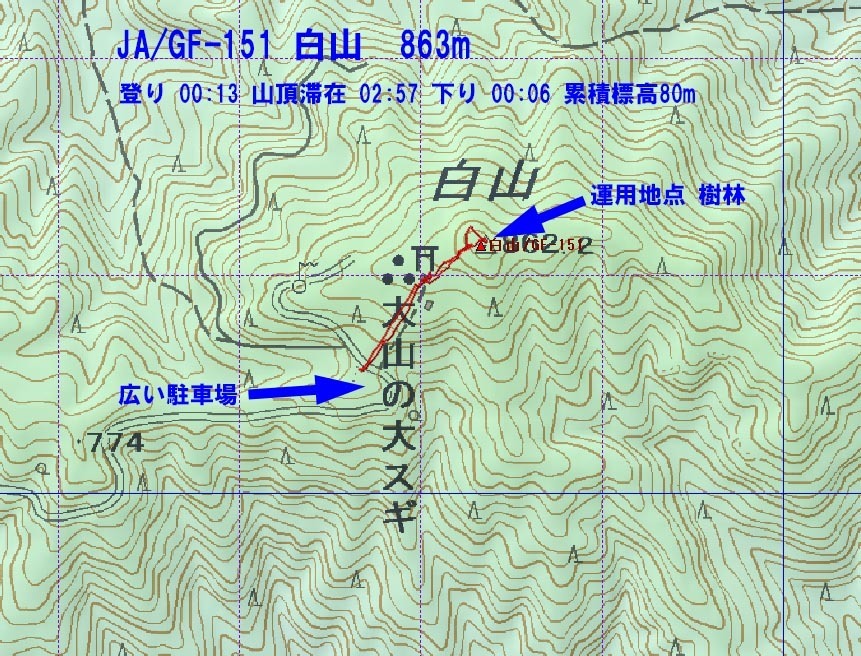 午後夕方の移動運用はどんな感じか体験しに御前ヶ岳に向かいましたが、獣害ゲートのところに立ち入り禁止が掲示され、半分ゲートが開いていたので、諦めて白山に変更しました。