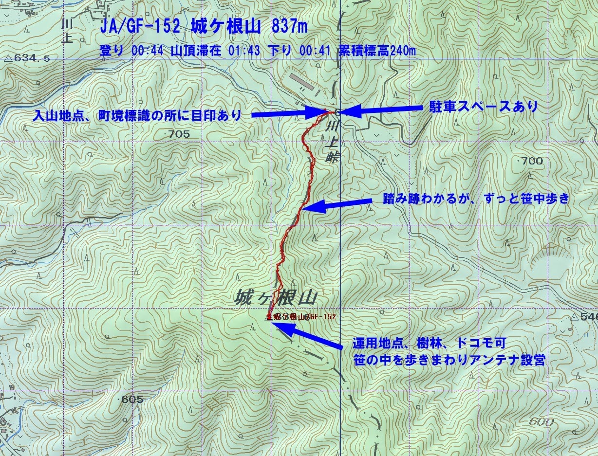 笹の中を歩きまわり、7MHz、18MHzのダイポールアンテナ設営、運用。