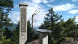 林道に従って歩いているとだんだん谷から離れていくので引き返し、荒れた方の林道に入り直し。倒木が2箇所ほどあったり、草がたくさん生えてオフロードオートバイでも無理そうな廃林道を歩いて行くと、またもや谷を渡り反対方向に道が向かい始めたので、引き返し道がはっきりしない植林の中を山頂に向かって歩くことにした。笹が無いのでありがたい。途中から尾根に乗ってみると、うっすらと踏み跡、時々テープが現れそれは山頂まで続いていました。