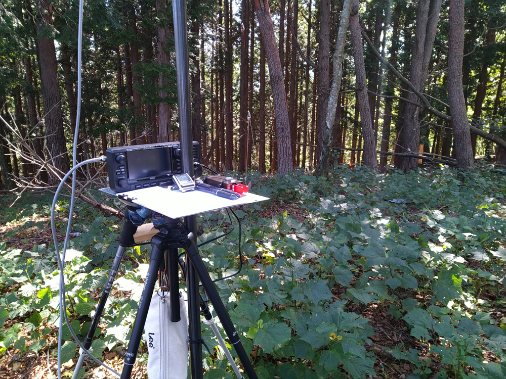 山頂は樹間が広くなだらかなところで、ワイヤーアンテナ張りやすい場所でした。7、21、14MHz3バンド運用。