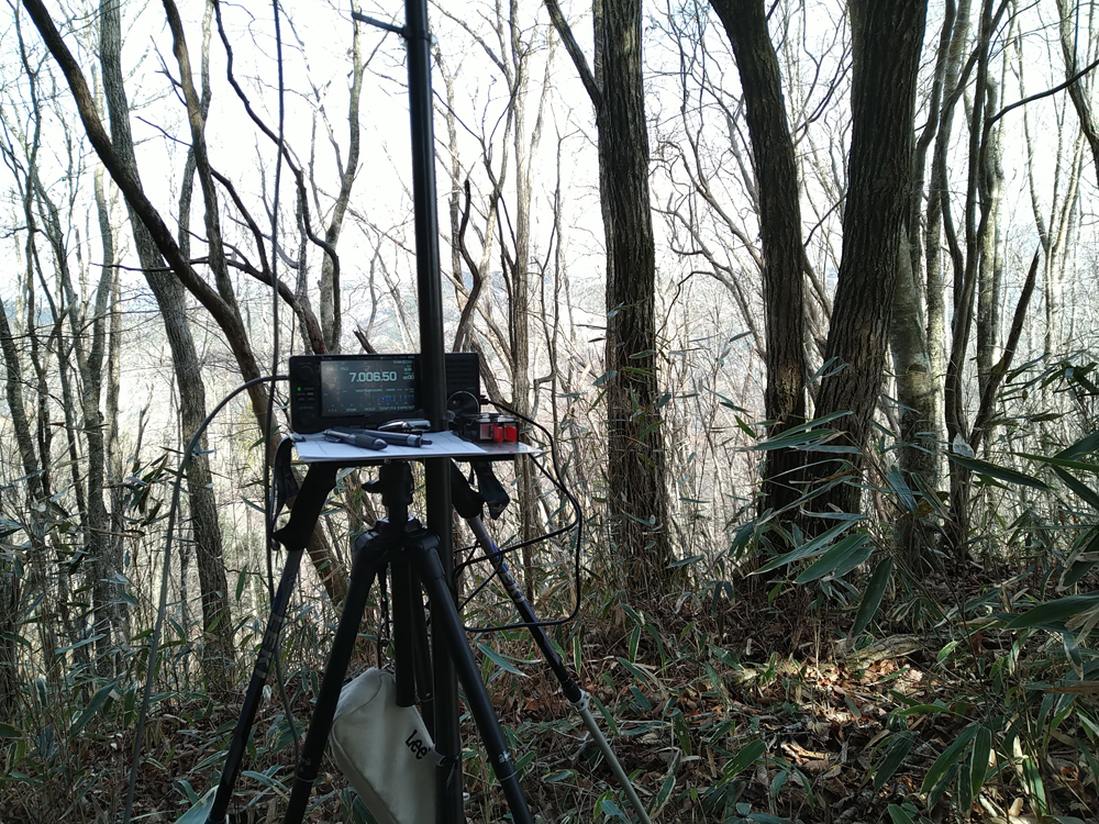 樹林と笹の山頂で久しぶりに7MHzフルサイズダイポールアンテナを張り電波を出してみると、たくさんの無線局に呼んでもらえ、遅めの時間でしたが21MHz、18MHz運用でも海外などと交信できました。