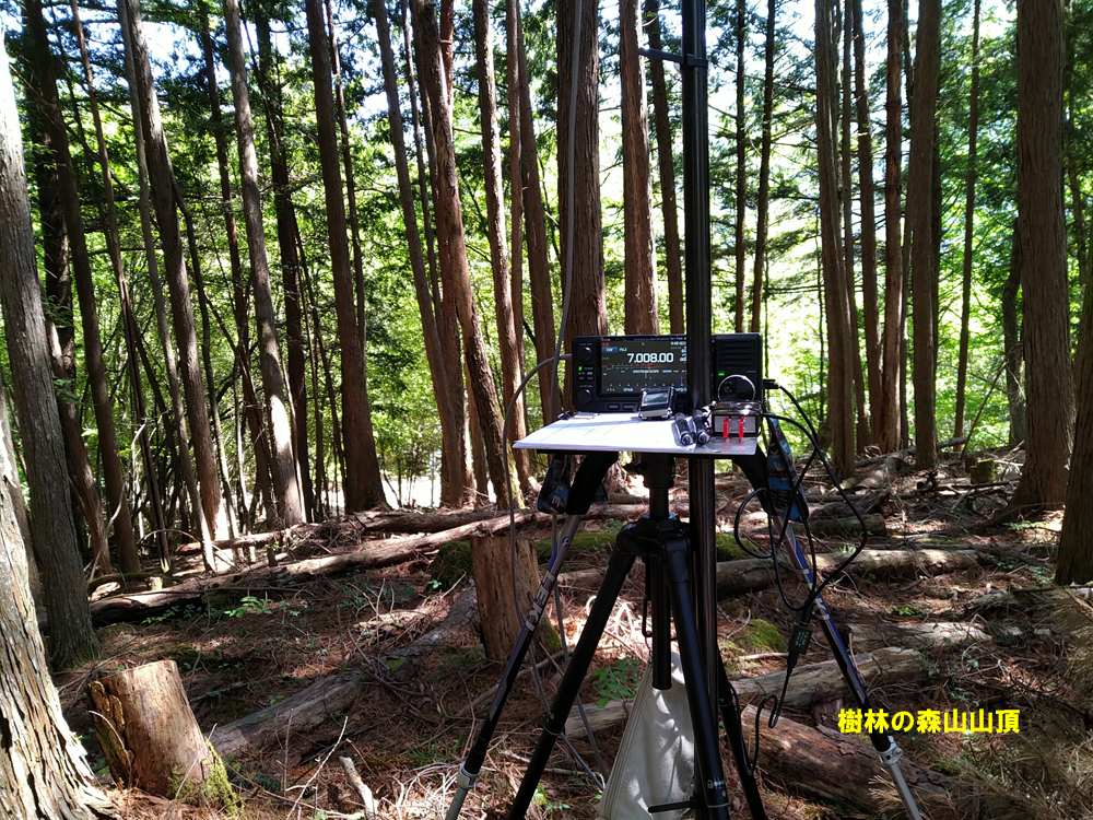 植林の間をワイヤーが通るようにアンテナ設営。7MHzから始めて見ると5月1日よりさらにコンディションは良くなっていました。